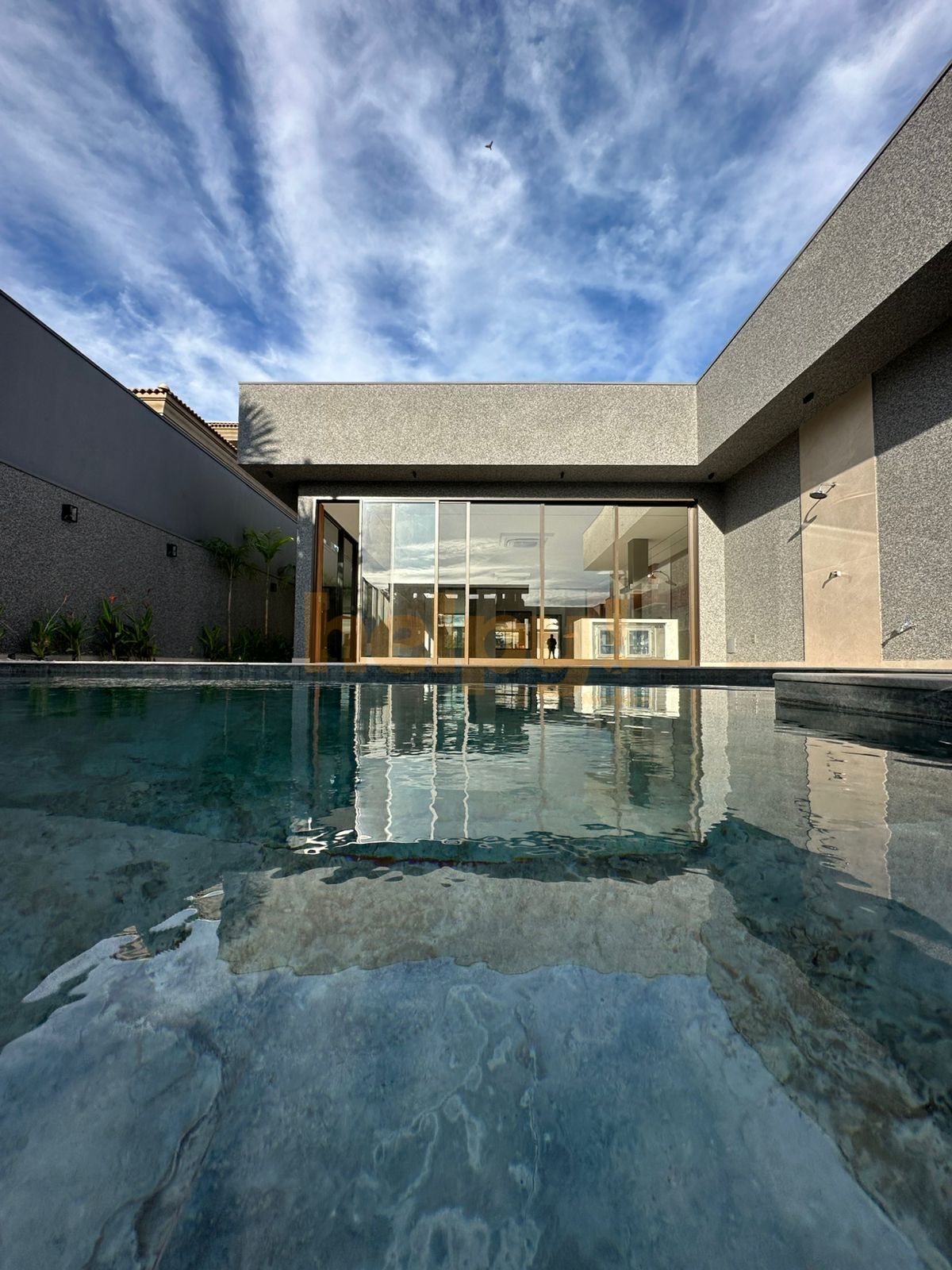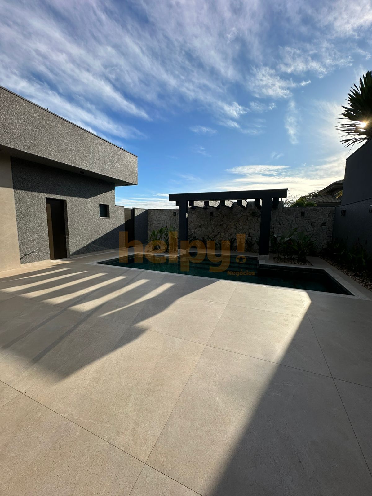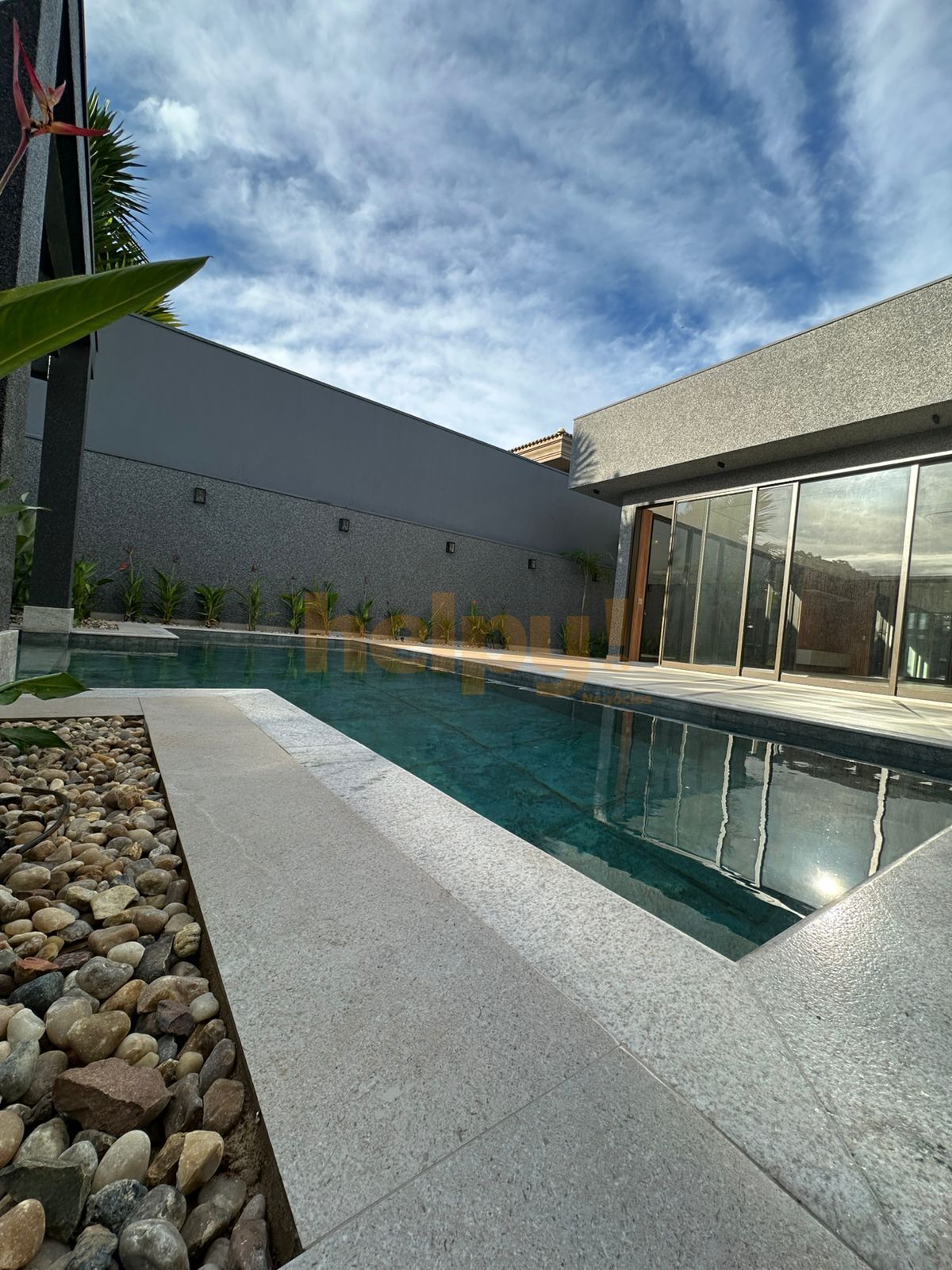 Piscina de alvenaria com aquecimento solar e iluminação em led e cascata de cortina com 2 m