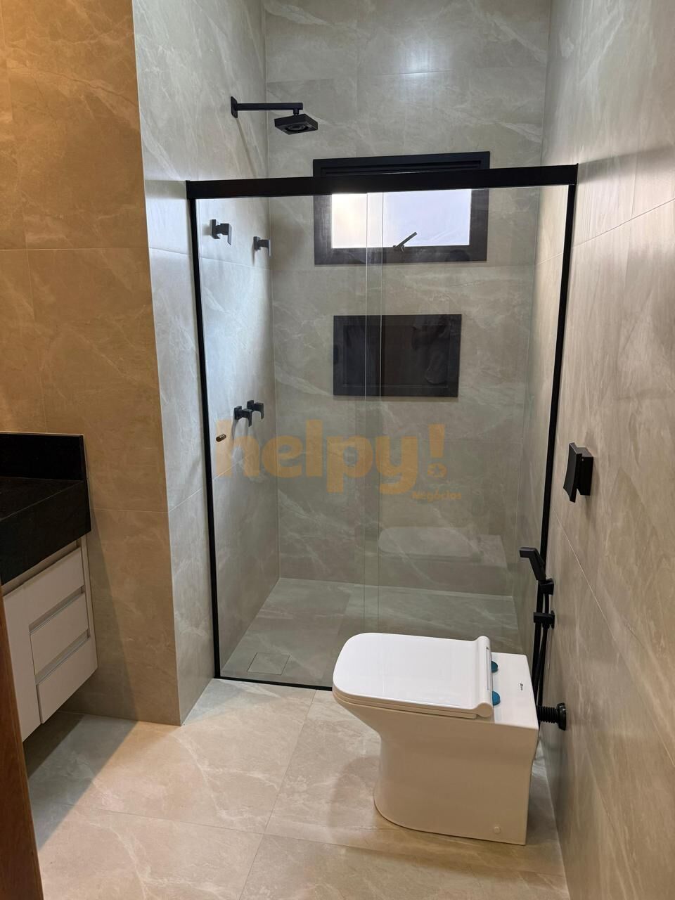* Acabamento de alto padrão com porcelanato, pedras granito preto São Gabriel, teto rebaixado em gesso e iluminação em Led, esquadrias pretas, fachada imponente e com muita iluminação natural.